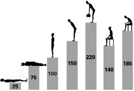 21.下面是《人体不同姿势腰椎受力情况表》,请择取图表中最能说明人体姿势与腰椎受力情况关系的三点信息,用文字进行概括说明。每条不超过25个字。(6分)