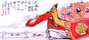 这是汉高祖刘邦(公元前247-前195)在击破英布军以后,回长安时,途经他的故乡沛(今江苏徐州市沛县),设宴招待家乡的故交父老,酒酣时自己击筑(古代乐器)而歌,所作慷慨豪情的《大风歌》。