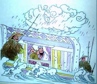 1.乌云翻滚像泼洒的墨汁尚未遮住山,白花花雨点似珍珠乱蹦乱跳打入船内。卷地而来一阵大风忽然间把雨吹散,风雨后望湖楼下波光粼粼水天一片。