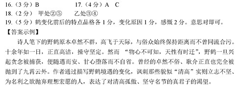 19.本诗题为《感鹤》,诗人借鹤的变化寄托了深沉的感慨。请结合全诗加以分析。(5分)