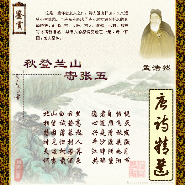 孟浩然《秋登兰山寄张五》古诗配图赏析