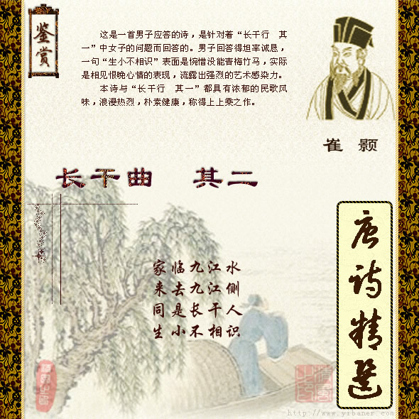 这两首可以看做是男女相悦的问答诗,恰如民歌中的对唱。第一首是天真无邪的少女起问;第二首是厚实纯朴的男子唱答。诗以白描手法,朴素自然的语言,刻划了一对经历相仿,萍水相逢的男女的相识恨晚之情。清脆洗练,玲珑剔透,天真无邪,富有魅力。