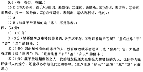13.⑴(3分)想要独享这座楼的美名的,除了这把琴,又有谁能适合它呢?(重点注意“专”“舍”“当”的翻译。)