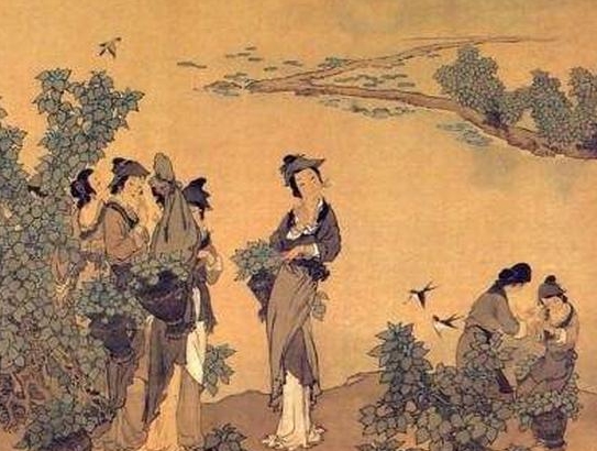当此良辰佳节之际,则有二少女,出现于词人笔下:在采桑的路上,她们正好遇着;一见面,西邻女就问东邻女:“你怎么今天这么高兴?夜里做了什么好梦了吧!快说来听听!”东邻笑道:“莫胡说!人家刚才和她们斗草来着,得了彩头呢!”