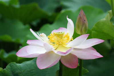 绿柳环绕、鸳鸯游憩,池塘中长满了绿色的浮萍,连采莲小舟来往的路也被遮断了。不但莲舟路断,无人采摘,甚至连蜂蝶也不光顾,荷花只能在寂寞中逐渐褪尽红色的花瓣,剩下孤苦的莲心。