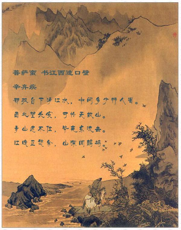 郁孤台下清江水,中间多少行人泪。西北望长安,可怜无数山。