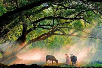 阵阵西风,吹过平原,带来了禾黍的芳香;溅溅流泉,泻入沟渠,打谷场上一片繁忙。只有它———经过了一年辛勤耕耘的老牛,闲适地躺在山坡上,嚼着草,沐浴着金色的夕阳。