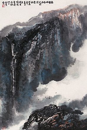 “泉声咽危石,日色冷青松”,诗人以倒装句,突出了入耳的泉声和触目的日色。溪水之中危石耸立,泉水不能顺利流淌,好像发出呜咽凄切的声音;夕阳西下,昏黄的余晖洒在一片幽深的松林上,冷色的青松,使照在上面的日光仿佛也变冷了。这里“咽”、“冷”二字用得极为准确、巧妙,被历代誉为炼字典范。“咽”是拟人,状石间泉声低沉,“冷”是通感,绘夕 阳余晖微弱。正如清人赵殿成在《王右丞集笺注》中所评:“下一‘咽’字,则幽静之状恍然 ;著一‘冷’字,则深僻之景若见。”此两句,作者将“泉声”、“危石”、“日色”、“青松”四个意象有机地组合在一起,以日色之凄冷与泉声的幽咽相互衬托。从而借泉声的幽咽和日色的凄冷,渲染山寺远离世间烟火、俗人难以接近的氛围。