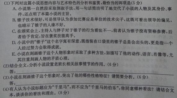 谢大立《千里马的伯乐》阅读答案(2)