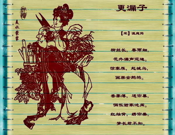 [译文] 柳丝飘飘,春雨绵绵,滴漏之声从遥远的花外传来。 [出自] 唐 温庭筠 《更漏子》 柳丝长,春雨细,花外漏声迢递。惊塞雁,起城乌,画屏金鹧鸪。 香雾薄,透重幕,惆怅谢家池阁。红烛背,绣帘垂,梦君君不知。 注释: 迢递:远远传来。 画屏:有画的屏风。 香雾:香炉里喷出来的烟雾。 谢家:西晋谢安的家族。这里泛指仕宦人家。 红烛背:指烛光熄灭。 梦君君不知:又作“梦长君不知”。 ![]() 译文: 柳丝纤纤,春雨蒙蒙,花上的雨滴地落下来,好像远远传来铜壶的滴漏声。遥天传来大雁的唳叫,城上响起了乌鸦的啼鸣,莫不是被那滴漏声惊起?只有那画屏上的金鹧鸪依然如故,安祥恬静。芳香的薄雾,透过重重帘幕,使闺中景象更加令人惆怅。在红烛斜照,绣帘低垂的闺房里,那位远行人又怎知道这女子梦里悠长的思念? 赏析一: 这是一首以闺怨为主旋律的“小夜曲”。 上片写漏声触动女主人公的离思。“柳丝长”三句移情入景,颇具象外之致。“春雨”、“药外”,点出这是极易引人愁思的仲春时节。而“柳丝”,则是习见于唐诗的意象——李白《劳荣亭》:“春风知别苦,不遣柳条青。”刘禹锡《杨柳枝词》:“长安陌上无穷树,唯有垂杨管别离。”韦庄《台城》:“无情最是台城柳,依旧烟笼十里堤。”因而,以“柳丝”起笔,能引发读者的联翩浮想。这里,“柳丝长,春雨细”,实际上既是刻划春景,也是形容漏声,同时还是比况女主人公的离思:它长如柳丝,细若春雨,缠绵,柔韧,难以挽断。这三句暗示了女主人公的夜长无眠:只有失眠的人才对这又远又细又长的漏声如此敏感(“迢递”,远也)。“惊塞雁”三句则是说,这漏声能惊起关塞外的大雁和城堞上的乌鸦,只有“画屏金鹧鸪”不为所动。“雁”前冠以“塞”,便有了特定的含义,成为边地的代表性景物。女主人公的心上人无疑正戍守在那“塞雁”、“城乌”惊起的地方。这漏声既然能惊起“塞雁”和“城乌”,当然也会惊起她的心上人了。那么,此刻他是否也愁思萦怀,情不自已呢?细加体会,其中包含着多少关切、系念之意?这里,“惊塞雁,起城乌”两句都是动宾句式,“画屏”句却不着一个动词。看来,唯有“鹧鸪”此刻还在酣睡。这或许是因为它“双双”成对、无忧无愁吧?张惠言《词选》认为这三句“言欢戚不同。”陈廷焯《白雨斋词语》也说“此言苦者自苦,乐者自乐。”如果这“画屏金鹧鸪”确有寓意的话,那么,作者这里实际上是在抒发“几家欢乐几家愁”的感慨。可以想见,当女主人公从塞外收回她的思绪,而将目光移向画屏后,一定会对那“双双金鹧鸪”产生些微的恼怒和嫉妒。 下片写女主人公的愁思与夜俱深。“谢家池阁”,是“小楼高阁谢娘家”的省称,指代女主人公的居所。“香雾薄,透帘幕”,既是景语,也是情语:这茫茫夜雾,正象征着女主人那剪不断、理还乱的愁思。夜雾穿帘入幕,愁思铭心刻骨。此时此刻,女主人公必然会感到寒意袭人——寒意,与其说是起自茫茫夜雾,不如说是起自她似烟似雾般迷离怅惘的心境。“红烛背,绣帘垂”,也是借景传情之笔:女主人公之所以吹灭红烛(“背”,犹灭),大概是因为红烛易使她回忆起当日红烛高烧,“言笑晏晏”的情景,而不胜今日的凄凉,孤寂吧。而她之所以在这尚无蚊虫侵扰的春季便垂下帐帘,大概也是想用这层轻纱隔绝那茫茫夜雾和夜雾般的莫名惆怅,也隔绝帐外所有让她触景伤情的景物,如“画屏金鹧鸪”之类吧?因而,“红烛背,绣帘垂”这一乍看并无意义的简单动作,实际上也曲折地反映了女主人公复杂的心理活动,结句“梦长君不知”感叹自己的相思之情无人知晓,隐隐流露出对久戍不归的丈夫的哀怨,意味深长,情思摇曳。夜正深,曲未终,女主人公纵然入梦,怕也只能梦见“几许伤心事”而益增惆怅吧? ![]() 赏析二: 这首词是一首抒写女子春夜相思愁苦的春怨词。 词的上片写女子春夜难眠的情状。作者由景写起,以动寓静。柳丝亦如情丝,细雨亦湿心田,如此长夜,思妇本已难眠,却偏偏总有更漏之声不绝。“惊”“起”雁、乌,更惊起独守空房的相思女子。寂寞中听更漏声,仿佛石破天惊,甚至连画屏上的鸟都已被惊起,女子的朦胧情态一扫而空,惆怅更重。上片写景似乎单纯,但处处都可见情,“惊”“起”的气氛笼罩全片,为下片的叙写情怀做了极好的铺垫。 词的下片直接写人,以静寓动。香雾虽薄却能透过重重的帘幕,正像相思的惆怅挥之不去,驱之还来。过片三句写尽了闺中女儿怅惘寂寞的心思。最后三句说,任红烛燃尽,把帐帷落下,本以为可以不再听、不再看便不再思了,未料想,相思却入梦,只是梦里有君君不知啊!下片写人兼写境,以女子的心境来写女子的环境,实际上暗中写出了“君”的无情和冷漠,由“君”的“不知”更写出了女子的“惆怅”和凄苦,是以情视景、以景见意的写法,委婉含蓄。 全词动中有静、静中寓动,动静相生,虚实结合,以女子的情态反映相思之情的无奈和愁苦,语轻意重,言简情深,含蓄蕴藉,曲致动人,是婉约词的风格。 胡仔《苕溪渔隐丛话》:庭筠工于造语,极为绮靡,《花间集》可见矣。《更漏子》一首尤佳。 胡元任云:庭筠工于造语,极为奇丽,此词尤佳。《花间集评注》引尤侗云:飞卿《玉楼春》、《更漏子》,最为擅长之作。 俞陛云《唐五代两宋词选释》:《更漏子》与《菩萨蛮》同意。“梦长君不知”即《菩萨蛮