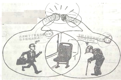观察下面的漫画,根据要求写一篇不少于800字的文章。 要求:结合材料的内容和寓意,选择好角度,确定立意,明确文体,自拟标题,不要套作,不得抄袭。 写作指导:首先,要完整准确地理解漫画内容,聚焦漫画核心。就漫画内容而言,焦点问题是法律与道德的博弈:年轻人主认为,法律赋予我有坐的权利,你不能强迫我让座;老人认为,年轻人有让座的道德义务,你应该主动让座。其次是挖掘漫画的社会意义,如何看待“法律与道德”的关系,如何处理好这种关系。 参考立意:列举以下几种,以供参考。 1.公交让座不能道德绑架,道德不可违背法律; 2.“坐”有权,但不可将法律与道德对立; 3.公交让座体现的是文明素养,也是道德素养,道德是最大的人情; 4.法律与道德的碰撞中,应有自己的选择。 易误提示:一是部分考生抛开漫画内容,大谈法律与道德的对立;二是部分考生审题忽视漫画特征,视“法律与道德”的碰撞与不顾,大谈道德或法律的重要性,造成题意偏离;三是部分考生审题重点发生偏移,将目光停留在公共服务方面,大谈要提升服务水平;四是部分考生没有紧扣法律与道德的辩证关系,将二者完全对立。