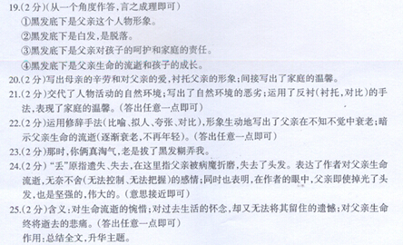 24.第⑨段“我竟觉得掉了头发的父亲是丢了羽毛的孔雀或凤凰,在人群间有些落寞”中“丢”字用得很传神,请简要品析。(2分)