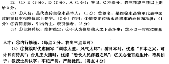 (4)作为一名抗日将领,徐永昌的忧国爱民有哪些突出表现?请结合材料谈谈你的看法。(8分)
