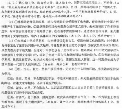 朱光潜的求学生涯 1912年,十五岁的朱光潜升入当时赫赫有名的桐城中学。当时桐城中学用的古文课本主要是桐城派作家姚鼐编写的《古文辞类纂》,这部著名的古文总集以“唐宋八大家”的作品为主干,上溯战国、秦汉、魏晋之文,下逮归有光、方苞、刘大櫆之作,其包罗之广、分类之当、鉴别之严、品评之精,颇得广泛好评。朱光潜熟读和背诵了从先秦到清代的散文名篇,得到了极大的收获,他的整个身心受到了传统文化甘霖的深深滋润。在桐城中学,朱光潜还对中国古典诗歌发生了浓厚的兴趣。当时的国文教师中,有一位名叫潘季野,酷爱古代诗歌,尤其对宋诗有很深的修养。他在教学中发现朱光潜勤奋好学,对语言文字的奥妙异常敏感,便注意加以悉心培养。他不分课内课外,指导朱光潜诵读《古诗源》、《唐诗三百首》、《唐宋诗醇》、《宋百家诗存》等诗集选本,使其概略地了解了中国古代诗歌的大体状貌、各代诗歌特点以及它们之间的承袭流变关系。 朱光潜攻读历代诗歌后,虽然觉得各有其佳妙之处,却颇看重魏晋人的作品,尤其钟爱阮籍和陶潜的诗篇。他一生最推崇的诗人是陶渊明,认为陶渊明的人格和诗风,体现了中国文人和中国诗歌的至高境界。“陶渊明全是自然本色,天衣无缝,到艺术极境而使人忘其为艺术。”(朱光潜《陶渊明》)爱好和钻研古代诗歌,对于后来走上文学和美学研究道路的朱光潜来说,可谓终身受用。因为依朱光潜看,诗是用最精炼的语言表现最精炼的情思,是最能体现文学特征的文学体裁。一切纯文学都有诗的特质。如果对诗没有兴趣,对于小说、戏剧等的佳妙处,难免总有些隔膜,因为故事在一流小说家和戏剧家的作品中,多半像枯树枝干搭成的花架,用处全在托起那绚丽灿烂、生气蓬勃的红花绿叶——小说、戏剧中的诗。朱光潜通过钻研诗歌,领悟了文学作为语言艺术的种种佳妙之处,更培养起一种典雅纯正的文学趣味,这种趣味很大程度也来自于潘季野的熏陶,以至于朱光潜在八十三岁高龄写自传时,还特别提出潘季野是他当时“得益最多的国文老师”。 桐城中学毕业后,朱光潜考入武昌高等师范学校。然而武昌高等师范学校国文系的教员水平之差,实在超出了他的想象。最突出者为系主任姚明辉,其学问杂而不纯,却自命不凡,以学贯中西、博古通今的大家自居,编著的书上多署名为“太平洋人”,讲课时穿凿附会,常常离奇的惊人。愤慨之下,朱光潜曾写信到教育部告状,投出的信却如泥牛入海,一年不到他就想离开学校。遇到这样的老师当然是极大的不幸,但朱光潜悟出了一个值得一辈子记取的教训:做学问和教书都得老老实实,认认真真,任何花拳绣腿、瞒言骗语,都既是“自欺”,又是“欺人”。当然,他在武昌也收获颇丰。他“规规矩矩”地把段玉裁《许氏说文解字注》从头到尾圈点一遍,大略窥探了中国文字学门径,提高了他对中国古代典籍的训诂考据的能力。同时,朱光潜发现世间竟然有那么多的书,并享受着读书的自由。年迈以后,与友人谈起当年的武昌,朱光潜对江边横街的旧书肆仍满怀留恋。 在武昌待了约一年光景,朱光潜顺利通过选拔,被教育部派往香港大学学教育学。在港大期间,他住的那间寝室兼书斋的小房间很拥挤,写字台前放上一把椅子后,连插足坐下都要费些周折,小房间的墙上悬挂着“恒恬诚勇”四个大字。港大四年,朱光潜如饥似渴地博览群书。不仅熟练地掌握了英语,为自己观察世界提供了另一只眼睛,而且广泛学习英语文学、西方哲学、教育学、心理学、生物学、伦理学等多方面知识。他当时读书有个习惯,每读完一本书都做读书笔记,为的是把所学的东西在自己头脑里整理消化一番,变成自己的精神营养。在港大比较系统地学习西方学术文化后,朱光潜的思想发生了很大转变,这不仅表现在西方启蒙运动所倡导的个性主义、平等自由等观念逐步在他头脑里扎下了根,还表现在体现西方近代科学精神的实证思想、批判态度等被他奉为改造中国学术界的良药。朱光潜后来又曾在欧洲留学八年,加深和拓广了西方知识,但是,导致他知识结构发生根本变化,使他成为学贯中西的一代新学人的转折点,则不能不说是香港大学。 (摘编自钱念孙著《朱光潜:出世的精神和入世的事业》) 【相关链接】 ①朱光潜(1897-1986年),字孟实,安徽省桐城县人。现当代著名美学家、文艺理论家、教育家、翻译家。(摘自“百度百科”) ②“这(指进港大)是我生平的一大转机,假如没有得到那机会,说不定我现在还是冬烘学究,港大四年奠定了我这一生教育活动和学术活动的方向。”(摘自朱光潜《作者自传》) (1)下列对材料有关内容的分析和概括,最恰当的两项是( A.《古文辞类纂》因为是由桐城派作家姚鼐编写,因此成为桐城中学主要的古文课本,朱光潜熟读和背诵了其中的很多名篇,收获很大。 B.在古代诗人中,陶渊明最受朱光潜推崇,这主要是因为朱光潜的审美趣味,倾向于淡雅含蓄,而陶渊明的诗歌和人格都展现了自然本色。 C.在桐城中学求学期间,朱光潜意识到诗歌是最能体现文学特征的文学体裁,其他文学体裁比如小说、戏剧如果没有诗意,就失去了很多的文学价值。 D.由于武昌高等师范学校国文系主任姚明辉对教学极不认真负责,朱光潜意识到这种自欺欺人的老师对自己实在无益,因此产生了离开的念头。 E.朱光潜