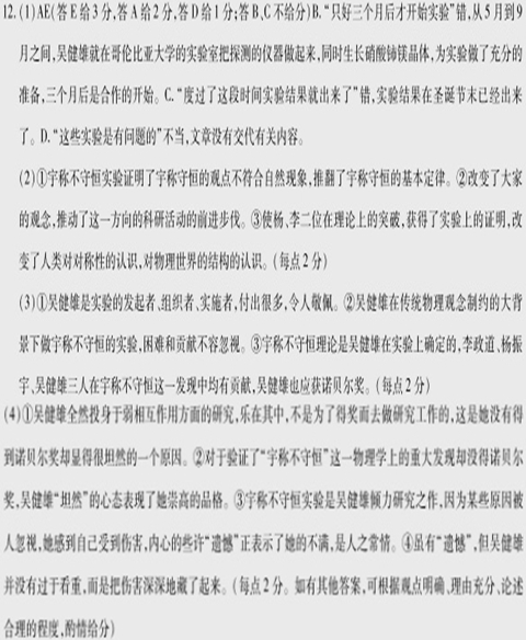 吴健雄和宇称不守恒实验 李政道 1997年2月16日,杰出的物理学家吴健雄教授逝世了。她是20世纪最杰出的物理学家之一,在实验物理学研究上取得了伟大的成就,对当代物理学的发展起了极重要的推进作用。 健雄出生于1912年5月31日。1934年从中央大学毕业后,第一年在浙江大学,第二年在中央研究院物理研究所工作。1936年,到加州大学伯克利分校学习。在拿到物理学博士后,教了两年书,然后在普林斯顿大学作深入的研究。1944年,她加入哥伦比亚大学,以后一直在那里从事教学和研究。 吴健雄最重要的实验——守称不守恒实验是在1956年间进行的。在物理学中,宇称守恒是指,除了左右不一样以外,它们以后的发展应该完全一样。可是健雄的实验结果表明,宇称守恒的观点与自然现象是不符合的。 下面是健雄的回忆。 1956年早春的一天,李政道教授来到我的小办公室……他向我解释了τ-θ之谜,以及它如何引起在弱衰变中宇称是否守恒的问题。他说,如果τ-θ之谜的答案是宇称不守恒,那么这种破坏在极化核的β衰变的空间分布中也应该观察到;我们必须去测量赝标量…… 在李教授的访问后,我把事情从头到尾想了一遍。对于一个从事β衰变物理的学者说来,去做这种至关重要的实验,真是一个宝贵的机会,我怎么能放弃这个机会呢? 那年春天,我的丈夫袁家骝和我打算去日内瓦参加一个高能物理国际会议,然后到远东去旅行讲学。我们两个都是在1936年离开中国的,正好是在20年前。我们已经预订了伊丽莎白王后号的船票。但我突然意识到,我必须立刻去做这个实验,在物理学界的其他人意识到这个实验的重要性之前首先去做。虽然我感到宇称守恒定律是错误的可能性不大,但是我迫切要作一个明确的测试。于是,我请求家骝让我留下,由他一个人去。幸好,他完全理解事情的重要性,同意一个人离开。 我跟她谈话是在1956年4月底5月初的时候,做这个实验需要低温务件,但她自己没有这样设备的实验室。于是,她写信给美国国家标准局低温组的领头人安布勒。安布勒7月份回信对健雄说,他要度假,9月份才回来。于是,从5月到9月之间,健雄就在哥伦比亚大学把探测的仪器做起来,同时生长硝酸铈镁晶体。到9月他们开始合作时,健雄的准备工作已经相当充分了。 到圣诞节末实验结果已经出来了,跟理论完全符合,按说应该可以发表了。但是,真正的实验科学家并不因为理论家说“very good”就完事了。在这之后还要重复再做,检查是不是有错误。1957年1月2日到8日,是宇称不守恒实验最困难的时候。霍普斯就睡在仪器旁,其他人住在旅馆。一有事就打电话,无论什么时候,马上就去实验室。 1月15日下午,哥伦比亚大学物理系召开了一个新闻发布会,宣布宇称守恒的基本定律出人意料地被推翻了。第二天,《纽约时报》的头版头条的标题是:“物理的基本概念被实验推翻”。这一新闻在公众中爆开,迅速传遍全世界。 我们对于物理世界的结构的认识的突然解放压倒了一切,沿着这一方向的科研活动以前所未有的步伐前进。 物理实验的发展常常与技术的进步联系在一起,有时甚至是同步的。宇称不守恒实验的情况则不同,当时它并没有受实验技术的制约,而是受到物理观念的制约。虽然,在过去有关β衰变的著作里,宇称等选择定则用得很多,也都与实验很符合,可是人们并不知道这些实验其实跟宇称守恒一点关系都没有。所以,当吴健雄的实验结果一出来,大家的观念变了。 1956年我和杨振宁在理论上建议了宇称不守恒,而实验上的确定是健雄做的。他的文章于40年前的2月15日发表在《物理评论》上。紧接着她的论文,加温、莱德曼和温里克发表了π的μ子衰变和μ子的电子衰变,得到了同样的结论。在同一卷的第1681页,还有特莱格迪和弗里德曼的文章,等等。在以后的半年之内,大概有几百个这方面的实验出来。 【相关链接】 ①1957年的诺贝尔物理学奖颁发给了提出宇称不守恒理论的物理学家李政道、扬振宁,但是,没有颁发给在实验上确定这一理论的科学家吴健雄。原因是吴健雄这一实验是与美国国家标准局的其他几位科学家共同完成的,其中最主要的是安布勒。一些人认为没有他们的低温原子核极化技术,实验就不可能完成,把实验的功劳归于吴健雄是不公平的。(张田勘《诺贝尔奖的公平与不公平》) ②对于自己没有得到诺贝尔奖,吴健雄显得很坦然,“我的一生,全然投身于弱相互作用方面的研究,也乐在其中,我从来没有为了得奖而去做研究工作。”“但是,当我的工作因为某些原因而被人忽视,依然是深深地伤害了我。”今天的我们不难感受到言语间些许的遗憾,这位被称为“物理科学的第一夫人”的伟大女性、科学家把自己受到的伤害长久地、深沉地藏匿起来。(张守涛《名校大师鲜为人知的另一面》) (1)下列对材料有关内容的分析和概括,最恰当的两项是( )(5分) A.吴健雄事业心很强,当她意识到宇称不守恒实验的重要性,就马上做出决断,放弃旅行讲学等事情,全身心投入实验之中。 B.吴健雄的实验室没有做宇称不守恒实验的条件,于是她写信向安布勒求助,由于安布勒要度假,只好三个月后才开始实验。 C.1957年1月2日到8日,是宇称不守恒实验最困难的时候,晚上有的实验人员就睡在仪器旁,度过了这段时间实验结果就出来了。 D.宇称不守恒实验结果出来后,人们发现有关β衰变著作里