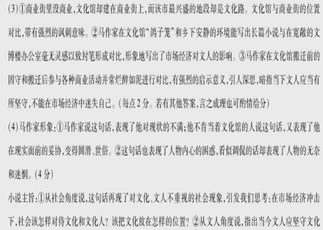 位置 秦德龙 “文化馆里没文化”。这话是马作家说的,是马作家当着外地作家说的。当着文化馆的人,他可没这么说。文化馆里40多号人,读不下来报纸的,大有人在。怎么说呢,文化馆相当于疗养院了,安排的多是各级领导的亲戚。唉,不说也罢。 马作家窝在文化馆30年了,早就修成正果了。所谓正果,就是看透不说透,大家做朋友。再说了,你就是说透了,又能怎么样?还不是自讨没趣嘛。你当你的创作员好了,又拿工资又挣稿费,何必让人当成多嘴驴呢?知足吧。 知足者常乐,不是吗? 但是,新馆长一来,马作家就乐不起来了。 新馆长叫常六。 常六上任后,放出风声说,要把文化馆卖了,说是有个老板相中了文化馆的黄金地段,要在这里开个家电大卖场。 说来也是个荒诞。文化馆这条街,一直叫商业街。可早些年,商业并没兴起来,只有两家小店铺,半死不活。有道是“商业街没商业”。可文化馆却又偏偏建在了商业街上,而本市商业最兴盛的地段却是文化路。也不知是谁造成的阴差阳错,马作家曾写过一篇小说,做了暗讽。 现在,常六要卖文化馆,这可怎么办呢? 马作家没想到,常六找他谈话了。 常六说:“马老,我叫您马老,您不会不高兴吧。当然了,您要是个老百姓,我就不叫您马老了,就叫老马了。” 马作家矜持地说:“叫什么都无所谓,我已年过半百,图个安逸喽。一般地说,50岁以上的人,就是固守喽。除非一刀切,把我切回家抱孙子去!” 常六笑道:“马老,我知道你对文化馆拆迁有看法,今天,我就是来和你沟通的。我对老作家是很尊重的。马老,我要做一件事,就是抢救您的文化遗产!” 马作家一哂:“我那算什么文化遗产?你要抢救文化遗产,就先把地方戏拾起来!” 常六说:“怎么,您是怀疑我的能力吧?实话告诉您,领导文化,我并不外行。我会唱歌,也会跳舞,唱歌能唱卡拉OK,跳舞能跳三步、四步!” 马作家大笑:“好啊,有你这样的领导,老百姓天天都高兴!” 常六说:“我不是吹,文化馆卖了,在东区重新弄块地皮,我有这个能力。让您去弄地皮,您能弄来吗?” 马作家摇摇头,表示不能。 常六继续说:“新文化馆的格局,我已经谋划好了,就叫文博楼!马老,您想想,文博楼比文化馆美吧?档次高吧?您坐在文博楼里写小说,多好的事呀!” 马作家说:“文化馆在市中心,群众来往很方便。你把文化馆迁到东区去,大老远的,群众怎么开展活动?” “这有什么呢?交通、通讯这么发达,距离不是问题。” “怎么不是问题?离群众远了,就是问题!” “马老,看来您真是个反对派。实话对您说,大部分人,是同意搬迁的,支持建筑文博楼,放弃陈旧的文化馆!” “真理往往掌握在少数人手里。” “还是少数服从多数吧。” “算你牙齿硬。” 谈话不欢而散。 第二天,马作家再和常六照面,彼此的脸色都不好看了。 马作家索性报名下乡去了。他联系了个乡下朋友,找了个穷乡僻壤,写小说去了。到了乡下,手机就关了,让文化馆的人找不到他。家里人,打过了招呼,有急事,可通过朋友找他。办公室的钥匙留在家里了,没啥急事,别来烦他。工资卡,也留在家里了,老婆能按月取钱花就行了。 三个月过去了,马作家完成了一部长篇小说的初稿。 回到市里,马作家先去了商业街,却找不到文化馆的影子了。文化馆的遗址,成了建筑工地,一些工人正在建高楼大厦。 站在文化馆的遗址前,马作家无话可说。 打开手机,一条短信息跳了出来:“欠个人钱的是穷人,欠国家钱的是富人;喝酒看度数的是穷人,喝酒看牌子的是富人;写书的是穷人,盗版的是富人;吃家禽的是穷人,吃野兽的是富人。” 马作家看看短信息,咧嘴苦笑。 半年后,马作家参加了家电大卖场的开业典礼。商业街终于有商业了。大卖场设了个图书角,销售各种书籍。马作家为自己刚刚出版的长篇小说,签名售书。排队来买书的粉丝们,多是常六招呼来的。常六把书款先发给粉丝,粉丝拿钱来买书就是了。当然了,长篇小说也是常六拿钱给出的。 文博楼也竣工了。楼里有马作家的一间创作室,很宽敞,很排场,比原来文化馆的那间鸽子笼强多了。 只是,马作家挂笔了。 马作家已没有了灵感和创作冲动。当然,他很忙,忙着开班讲课,讲文学创作。他也当评委和嘉宾,穿西装打领带,举牌打分。文博楼有啥活动,都少不了马作家的位置。常六经常把马作家塞进小车里,拉他出去喝酒。每次,马作家都烂醉如泥。 (选自《小小说选刊》2016年4期,略有删改) (1)下列对这篇小说思想内容与艺术特色的分析和鉴赏,最恰当的两项是( )(5分) A.小说开篇以调侃的语气介绍文化馆人员构成情况,表达了作者对文化馆人浮于事,馆内人员滥竽充数、水平参差不齐的强烈讽刺和极大愤慨。 B.小说注意细节描写,使情节发展合情合理,如马作家到乡下后关掉手机,把办公室的钥匙留在家里等,为下文他不知道文化馆已经搬迁埋下伏笔。 C.小说所写的文化路商业街的错位、手机短信、开班讲课等现象,再现了形形色色的社会问题,突出了作者对当代道德失范的社会现实担忧的主题。 D.小说结尾写马作家常被常六带出去喝酒,被“塞”,被“拉”,并每次都喝得烂醉如泥,表现了在市场经济冲击下,文化人的尴尬处境及内心的痛苦。 E.这篇小说通过常六和马作家的矛盾冲突,塑造了常六这样一位在经济大潮中敢冲敢闯,富有开拓精神,既有经济头脑又有强烈文化意识的领导者形象。 (2)小说以“位置”为标题,