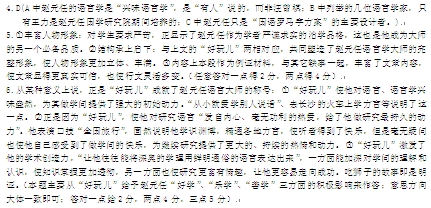 赵元任:中国现代语言之父 韧 雾 中国近现代历史上,有位非常爱“玩儿”、一不小心就“玩”成了世界级大师的人物。他,就是中国现代语言之父——赵元任。 赵元任,原籍江苏常州,1892年生在天津一个官宦之家,是赵匡胤的第31代孙,其六世祖是清朝“乾隆三大家”之一的诗人赵翼,“江山代有才人出,各领风骚数百年”的名句就出自赵翼之手。 赵元任在语言上天赋异禀。从小就爱学别人说话,很早就学会了各种各样的方言。15岁考入江南高等学堂后,一次与来自四面八方的客人同桌就餐,赵元任居然能用8种方言与大家交谈。1920年10月到1921年7月,英国哲学家罗素来华巡回演讲,赵元任担任翻译工作。罗素讲演有一站是去长沙,火车上赵元任就跟身边人学长沙话,等到了长沙翻译时,他已可将英语翻成长沙话了。他的绝活之一,是在清华园的周末同乐会上表演口技“全国旅行”:从北京沿京汉路南下,经河北到山西、陕西,出潼关,从河南入两湖、四川、云贵,再由两广绕江西、福建到江苏、浙江、安徽,由山东过渤海入东三省,最后入山海关返京。“旅行”遍及大半个中国,而每到一地,赵元任便用当地方言土语,介绍名胜和土特产,他一口气说了近一小时,听者无不捧腹。 1925年清华国学研究院成立,赵元任成为国学院“四大导师”中最年轻的一个。合约上写明他想教什么就教什么,他最后选择开设现代方言学、中国音韵学和普通语言学,从这时起,将语言学作为一生努力的专业。 赵元任告诉女儿,自己研究语言学只是为了“好玩儿”。也许正是这种对学问发自内心、毫无功利的热爱,给了他做研究最持久的动力。汪曾祺说诗人气质的沈从文搞文物考古,搞的是“抒情考古学”,所以有人说赵元任的语言学是“兴味语言学”。 这种“好玩儿”让他往往能将深奥的学理用鲜明通俗的语言表达出来。 讲授汉语一个重要的特点“同音异形”时,他忍不住技痒,用一堆同声同韵单音字,创作了著名的《施氏食狮史》: 石室诗士施氏,嗜狮,誓食十狮。氏时时适市视狮。十时,适十狮适市。是时,适施氏适市。氏视十狮,恃矢势,使是十狮逝世。氏拾是十狮尸,适石室。石室湿,氏拭室。氏始试食十狮尸。食时,始识十狮尸,实是十石狮尸。试释是事。 这个吃狮子的幽默故事,据说成为汉学家们压箱底的噱头,还被正式收入《大英百科全书》,专门用来说明汉语的特点。 “好玩儿”不代表研究学问不严肃认真。著名的语言学家王力,曾是清华国学研究院32名学生中唯一报考语言学的人,赵元任是他的导师,梁启超做辅助导师。两人风格截然不同,梁启超鼓励为主,赵元任则要求严苛。王力1927年写的论文《中国古文法》,梁启超在封面上写了一总批“精细妙悟:为斯学辟一新途径”。赵元任只给予了一句褒语,其余用铅笔小字作眉批,专挑毛病。其中王力讲到“反照句”“纲目句”时,加了一个“附言”:“反照句、纲目句,在西文罕见。”“元任先生批云:‘删附言!未熟通某文,断不可定其无某文法。言有易,言无难!’这是对我的当头棒喝。”王力深感惭愧,后来将老师赵元任的批评“言有易,言无难”,当作警示自己一生的座右铭。 新文化运动中,语言文字改革被认为是改良社会的一种途径,许多人为之努力,赵元任也不例外,他终生都是一位最坚定不移的语言文字改革家。1928年南京的大学院正式公布《国语罗马字方案》,赵元任是主要的设计者。1958年,中国通过并全面推广汉语拼音方案,就参考了《国语罗马字方案》。作为视听教学法的先驱,赵元任编写的教材和录制的国语唱片成为教学的范式,其方法延续至今。 他还是中国第一位用科学方法做方言方音调查的学者。1927年他历时2个多月辛苦奔走,记录了吴语区33个地方的方言,《现代吴语的研究》于次年出版,是“中国第一部用现代语言学方法研究方言的著作”,也是现代汉语方言学正式诞生的标志。此后的《广西瑶歌记音》《湖北方言调查》(主编)《中国话的文法》《语言问题》等,皆是不朽的著作。 (有删改) 相关链接: 赵元任博学多才,既是数学家,又是物理学家,对哲学也有一定造诣。然而他主要以著名的语言学家蜚声于世。他从1920年执教清华至1972年在美国加州大学退休,前后从事教育事业52年。中国著名语言学家王力、朱德熙、吕叔湘等都是他的学生,“给中国语言学的研究事业培养了一支庞大的队伍”,可谓桃李满天下。 4.下列对材料有关内容的分析和概括,正确的一项是(3分) A.赵元任在清华园周末同乐会上表演口技“全国旅行”,说明了他非凡的语言天赋,也是汪曾祺所说赵元任“兴味语言学”的重要体现。 B. 1925年清华国学研究院成立,赵元任选择开设现代方言学、中国音韵学和普通语言学,其时王力、朱德熙、吕叔湘等都是他的学生。 C. 新文化运动中,赵元任把语言文字改革作为改良社会的途径,设计了《国语罗马字方案》;为视听教学法编写了教材、录制了国语唱片,其方法延续至今。 D.选文记叙了赵元任学者生涯中的许多有趣的轶事,对传主的性情、思想、学术品格作了多方面的呈现,既丰富了文章内容,又使行文生动活泼,富于变化。 5.文章第九段详细写了赵元任作为导师对王力论文的批评一事有什么作用?请简要分析。(4分) 6.文章开始说赵元任是“玩”出来的大师,文中多次写到赵研究语言学是“好玩儿”,你怎样理解“