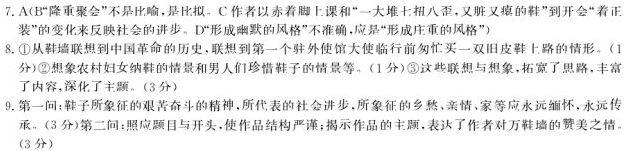 万鞋墙 梁衡 陕北多山,千山万壑。有村名赤牛,世代农耕,名不见经传。近年有退休回村的干部老高,下决心搜集本地藏品,建起一农耕博物馆。我前去参观,不外乎锄、犁、耧、耙、车、斗、磨、碾之类,也未有见奇。当转入一巨大窑洞时,迎面一堵高墙,齐齐地码着穿旧了、遗弃了的布鞋,足有两人之高,数丈之长。我问:“有多少双?”答道:“13000双。”我脱口而出:“好一堵万鞋墙!” 这鞋平常是踩在脚底下的,与汗臭为伴,与尘土、泥水厮磨,是最脏最贱之物,穿之不觉,弃之不惜,几乎感觉不到它的存在。今天忽然被请到墙上,隆重聚会,就像一支浩浩荡荡的翻身奴隶大军,顿然感到它的伟大。不管什么鞋,都已经磨得穿帮破底、绽开线头,鞋底也磨成了薄片。仔细看,还能依稀辨出原来的形状、针脚、颜色。每一双鞋的后面都有一个故事,从女人做鞋到男人穿它去种田、赶脚、打工等,一个长长的故事。我们这一代人都是穿着母亲亲手做的布鞋长大的,又穿着布鞋从乡下走进城市,每一双鞋都能勾起心底一段甜蜜或辛酸的回忆。这鞋墙就像是一堵磁墙,又像是一个黑洞,我伫立良久,一时无语,半天,眼眶里竟有点潮湿。 在回县里的车上,大家还在说鞋。想不到这个最普通的穿戴之物,经今天这样一上墙,竟牵动了每一个人的神经。一种鞋就是一个时代的标志。中国革命是穿着草鞋和布鞋走过来的。 新中国成立之初,我们建第一个驻外使馆,大使临行前才发现脚上还穿着延安的布鞋,匆忙到委托店里买了一双旧皮鞋上路。大约在上世纪60年代以前,北方农村的人一律穿自家做的布鞋,小时穿妈妈做的鞋,成家后穿老婆做的鞋。布鞋是维系农耕社会中的男女关系、农民与土地关系的一根纽带。我想,做鞋也成了农村妇女生命的一部分,从少女时学纳鞋底开始,一直到为妇为母,满头白发,满脸皱纹,她们一针一线地纳着青春,纳着生命。遇孩子多的人家,做鞋成了女人的沉重负担。男人们很珍惜这一双鞋,夏天干活尽量打赤脚,出门时穿上鞋,到地头就脱下来,两鞋相扣小心地放在田垄上,收工时再穿回来。每年农历正月穿新鞋是孩子们永远的企盼,也是母亲笑容最灿烂的时刻。要说乡愁、亲情、家,布鞋是最好的标志。 鞋不但是人情关系的标志,还是社会进步的符号。有人说,看一个人富不富,就看他家地上摆的鞋。我是1963年进大学的,同班有一位从湘西大山里考来的同学,赤着脚上课。老师问,为什么不穿鞋。他说长这么大,就没有穿过鞋。1968年大学毕业,按那时的规矩,我到内蒙古农村当农民劳动一年。生产队饲养院的热炕,是冬季的晚上村民们聚会、抽烟、说事的热闹地方。腾腾的烟雾和昏暗的灯光中,炕沿下总是一大堆七扭八歪,又脏又瘪的鞋,其中有一双就是我从北京穿来的,上面已补了13个补丁。90年代我已在北京中央国家机关工作,那时的会议通知常会附一句话:请着正装。“正装”什么意思?就是要穿皮鞋。 那几天在县里采访,虽还有许多其他内容,但脑子里总是转着那些鞋。立一堵墙以之纪念,是人们常用的方法,最著名的如巴黎公社墙、犹太人的哭墙,还有国内外经常看到的烈士人名墙,但集鞋为墙,还是第一次见到。鞋虽踩在脚下,不像帽子风光,却要承一身之重,走一生之路,最是苦重,也最易被人忘记。 我们常说“慈母手中线,游子身上衣”,却很少人说到“游子脚下鞋”。做鞋,首要是结实。先要用布浆成“衬”,裁成帮,裹成底。将麻搓成绳,锥一下,纳一针。记得幼时,深夜油灯下,我躺在母亲身旁,是听着纳鞋底的刺刺声入睡的。现在市面上已找不到人工布鞋了,那天我在县里托人找了一双,不为穿,是想数一下一双鞋底要纳多少针。你猜多少?2500针。那堵鞋墙共有13000双鞋,你算一下,总共有多少针呀!每一个人都说自己的事业轰轰烈烈,走过的道路艰苦曲折,又有谁想到脚下千针万线的慈母鞋呢? 鞋墙不朽。 (有删改) 7.下列对文章相关内容和艺术特色的分析鉴赏,最恰当的一项是(3分) A.作品开头一段写赤牛村名不见经传和老高建起的农耕博物馆也未有见奇,以此来反衬“一堵万鞋墙”给“我”的惊奇感受。 B.第二段通过“隆重聚会”和“像一支浩浩荡荡的翻身奴隶大军”这两个比喻,把无生命的鞋写活了,一个“请”字表达了作者的敬意。 C.以“赤着脚上课”反映出湘西的贫困,以“一大堆七扭八歪,又脏又瘪的鞋”反映出农村的落后,以“着正装”反映城市的富裕。 D.这篇散文运用以小见大的构思手法,通过塑造“穿之不觉,弃之不惜”的鞋这个意象,表达了深刻的主旨,形成幽默的风格。 8.梁衡的散文善于运用联想、想象,请以第三段为例简要分析。(5分) 9.作品结尾说“鞋墙不朽”,这句话的含意是什么?作品以这句话结尾有什么用意?请简要分析。(6分) 参考答案 7、A