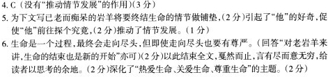 巡山 艾克拜尔·米吉提 他看到了那顶毡房穹顶般硕大的犄角,在那里纹丝不动。居然是在那并不险峻的山脊上。他极目望去,竟是一头岩羊卧在一块大圆石上。按说,那不该是岩羊歇脚之处。以它天生机敏,此时它应该有所动作才好。但是,不知怎的,貌似全然无知,一动不动。 这引起了他足够的好奇。 自从持枪证和猎枪一同被收缴,他再没有触及过岩羊的皮毛。岩羊已列入国家二级保护动物,猎获它是要犯罪的。当然,在这天山深处,所有的野兽和动物都有保护等级。这一点,他心里了如指掌。 这些年来,他只保留了一个习惯,每到初秋,都要到这山上走走,哪怕是看一眼那些野物。他自己将此称为巡山。现在山上的野物越来越多了。有时候成群的野猪会趁着夜色跑到牧人营盘附近,将草地翻拱一番兴冲冲地离去,压根不理会牧羊犬凶猛的吠声。肥嘟嘟的旱獭也会在光天化日之下昂然走过车路饮水上山。有一回走在山林里,不经意间一抬头在树杈上见到了狸猫,那家伙没有丝毫的怯意,两眼直视着自己,闪着幽幽的光。狼和狐狸他也常见。有一次,一只狼叼着一只黑花羊从公路旁高高的铁丝网上纵身腾跃而去,全然不顾飞驰的汽车,横切公路越过另一道铁丝网,在公路另一侧的草原上,朝着那条山梁奔去,估计它的窝就在那边,小狼崽们或许正在耐心等待它满载而归。 他终于从山坳登上了山脊。那只岩羊还在,几乎在那个大圆石上一动不动。 他有些迟疑。这是他此生见到的最不可思议的情景。一只岩羊,居然还会等着他登上山脊。按说以岩羊的机警,早就应该逃之夭天。 他下了马,将坐骑用马绊子拴好,向着大圆石走去。 岩羊依然没动。他的心有点缩紧——太奇怪了!真是匪夷所思!那只岩羊丝毫没有逃跑的意思。 山脊的风很强劲,呼啦啦地吹着,秋黄的草被风撩起一阵阵草浪簌簌作响。雪山上的雪线已经开始低垂。要不了多久,雪线也会覆盖到这座山脊。 他环视了一下,对今天的奇景疑惑不解。 他决定攀上大圆石看个究竟。 他利利索索就攀上了大圆石。 那岩羊还是没动。 走近岩羊的刹那,他惊呆了。 这是一只已经痴呆的老岩羊,它根本意识不到人的走近,双眼蒙满了眵目糊,牙也掉尽,那一对毡房穹顶般的犄角尖,已经深深地长进后臀皮肉里了。 他望着眼前这只老岩羊,一阵惊怵像电流般袭过周身。天哪,他想,唯有你苍天不老,人和动物都会老去。 他将老岩羊双眼的眵目糊擦去,老岩羊却对他视而不见。 他心疼极了。 你怎么会老成这样.他在心里问这只老岩羊。 难道没有哪只狼来成全你么? 但是他又否决了自己。 其实,他心里清楚,狼也只吃它该吃的那点活物。只不过是背负罪名而已。哈萨克人那句话说得好,狼的嘴吃了是血,没吃也是血。 现在,他的心情很沉重。他不忍心就这样抛下这只已经痴呆的老岩羊而去。生命总该有个尽头。他为这只老岩羊祈祷。于是,他割下这只老岩羊的首级,将长进后臀皮肉里的犄角尖拔出,面朝东方搁置好羊头,依然保持着它曾经的尊严。他把老岩羊的躯体肢解后放在大圆石上,用枯草揩净手和折扣刀,上马离去。 这时候,他看见天空中开始有秃鹫盘旋,还有几只乌鸦和喜鹊捷足先登,落在大圆石上开始争食老岩羊的肉。一个艰难的生命终于终结。 下山的时候,他的心情多少有些缓了过来。他自己似乎突然彻悟了什么。 4.下列对小说相关内容和艺术特色的分析鉴赏,不正确的一项是(3分) A.小说中的“他”原来是一个猎人,自持枪证和猎枪被收缴后,“他”成为知法懂法守法、山林动植物的守护者。 B.对山上各种野物的描写,细致而生动,突显了禁猎以后山林的美好,表达了人类和动 物可以和谐共存的主题。 C.有关“山脊的风”“秋黄的草”“雪线”的描写,点明了故事发生的季节,渲染了悲凉的气氛,推动了情节发展。 D.小说善于运用心理描写表现人物,当“他”走近岩羊后,一句“你怎么会老成这样”,体现了“他”的仁慈与善良。 5.小说的开头就交待了岩羊“生性机敏”的特性,这样写有什么好处?请简要说明。(5分) 6.小说的结尾写到:“他自己似乎突然彻悟了什么。”结合全文,说说“他彻悟”的内容,并简析这样结尾的艺术效果。(6分) 参考答案 4、C 没有 推动情节发展 的作用 5、为下文写老而痴呆的岩羊将要终结生命的情节做铺垫,引起了“他”的好奇,促使“他”前往探个究竟,推动了情节的发展。