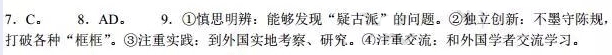 百岁饶宗颐:一代通儒 贾思玉 陈志明 1917年8月9日,饶宗颐出生于粤东古城潮州的一个名门望族。饶宗颐的父亲早年毕业于上海法政学校,饱读诗书,留意时势,参加过当时名震天下的革命团体——南社。饶老先生喜买书、藏书,将自己的藏书楼叫做“天啸楼”,有书达十万卷。饶宗颐幼承庭训,饱览群书,而且跟随自家请的名师苦学,打下了绘画、书法和古文的根基。 饶宗颐的问学之路并非坦途。16岁那年,正当壮年的父亲突然撒手人寰,而母亲早在他两岁时就已过世。身为家中长子,饶宗颐放弃入大学的计划,处理家中事务。“那时候,(父亲)留下庞大的财产与大批书籍,在这两者之中我选择了书籍。”他继承父亲遗志,完成《潮州艺文志》,踏出学术生涯的第一步。 父母早逝,战乱动荡,及至后来家族钱财、藏书灰飞烟灭,让饶宗颐过早地体会到何为四大皆空,也过早地参透何为心无挂碍。饶宗颐的学生、港大的郑炜明博士说,饶公一生推崇苏东坡,因为面对逆境,他往往比较达观、超然,“心态平和,乐观向上”。 1937年,抗日战争爆发。饶宗颐其时在中山大学广东通志馆任艺文纂修,同时已加入历史学家顾劼刚主持的禹贡学会,顾先生本拟将《古史辨》第八册交由饶宗颐负责。自幼慎思明辨的饶宗颐,发觉“古史辨”派过于疑古,基于自身学术思想的转变,饶宗颐并未接手此事。 1940年,饶宗颐完成了成名作《楚辞地理考》,此书没有墨守前人成说,而是提出了跟史学大家钱穆的《楚辞地名考》不同的意见,数十年后更是得到考古发掘的映证。 饶宗颐坚信“做学术不要有框框”,也要去除依傍。在继承清儒朴学的基础上,饶宗颐经过自己的探索,在每一个学术领域都挥洒得淋漓尽致。 1952年,饶宗颐开始执教于香港大学中文系,主讲《诗经》、《楚辞》、六朝诗赋、老庄哲学,同时兼任《东方文化》编辑。期间每年都有机会被派到国外开会,参加美、法等国的汉学研究机构的工作,跟外国汉学家的交往日益密切,接触到很多早年流失海外的典籍孤本,并能到印度等地进行实地考察、研究,他学问的规模更加博大。 1963年,饶宗颐应邀前往天竺梵文研究中心从事中印关系研究,得以师从印度著名学者老白春晖学习《利俱吠陀》,足迹遍及印度南北,贡献了不少很有见地的论文,还翻译了《利俱吠陀》经,为中印文化文流史研究作出了极大的贡献。有此因缘,也为后来饶宗颐与梵学大家季羡林的交往埋下了伏笔,人称“南饶北季”。季羡林认为,饶宗颐最善于发现问题。饶宗颐以之为知言。 二零零三年,饶宗颐教授将个人积累的数万册贵重藏书,包括非常珍贵的古籍善本,以及一百八十多件书画作品,捐赠给香港大学。 提到“饶宗颐”,很多人第一反应是“国学大师”。饶宗颐对这个称谓有保留。“我不是大师,我是大猪(潮汕话里,‘师’与‘猪’谐音)。”他曾开玩笑说,大师原是称呼和尚的。近两年,面对越来越多的追捧者,饶公最常说的话是:“不敢当、不敢当”。 (选自中国作家网,有删改) 【相关链接】 1.饶宗颐不仅是香港文化界的“镇港之宝”,也是当下中国最受尊崇的学者之一。学术界先后将他与钱锺书、季羡林并列,称为“北钱南饶”和“北季南饶”。而前者称赞他是“旷世奇才”,后者直呼“我心目中的大师就是饶宗颐”。 2.饶宗颐精通诗词、书画、古乐。其书法灵动优雅,耐人寻味。他的白描人物画,得到国画大师张大千的赞赏。在中国艺术史上,要将禅宗的意趣与绘画结合起来,历来是很难的事情,但是饶宗颐却将这两者完美地结合了起来。 ——中国作家网 7.下列关于原文内容的理解和分析,不符合原文的意思的一项是( )(3分) A.在面对庞大的遗产和书籍时,饶宗颐选择了后者。而完成《潮州艺文志》,既是继承了父亲的遗志,也是他学术生涯的开始。 B.饶宗颐曾有机会负责《古史辨》的第八册,但是饶宗颐却认为“古史辨派”过于疑古,从自身学术思想的转变出发,他并未接手此事。 C.饶宗颐为了使自己学问的规模更加博大,利用出国开会的机会到国外参加汉学机构的工作,到印度等地进行实地考察、研究。 D.饶宗颐在自己的成名作中提出了和史学大家钱穆的《楚辞地名考》不同的意见,而这在数十年后得到了考古发掘的验证。 8.下列对材料有关内容的分析和概括,最恰当的两项是( )(5分) A.饶宗颐不仅从小就接受父亲的教育,饱览群书,并且跟随自家请的名师学习。这些经历为他以后的学术发展打下了坚实的基础。 B.家庭的变故和局势的动荡没有打垮饶宗颐,因为一生推崇苏东坡,所以在面对逆境和困难时,他往往能够表现得达观、超然。 C.饶宗颐谦虚淡泊,学术界先后将饶宗颐和钱锺书、季羡林并列,面对两位大师对自己的赞誉,饶宗颐最常说的话就是“不敢当”。 D.文章在介绍传主生平事迹时引用了传主本人和学生的话,增强了文章的说服力,体现了传记文学真实性的写作原则。 E.饶宗颐诗词、书画、古乐样样精通,他将禅宗的意趣与绘画完美地结合了起来,由此他得到了国画大师张大千的赞赏。 9.作为享有盛誉的“一代通儒”,饶宗颐在治学方面有哪些值得我们学习的品质?请结合文章概括并简析。(4分) 参考答案 7、C 8、AD