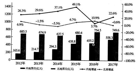 材料一: 国内电影票房增长率经历了2016年在高速路上的“急刹车”后,在备受压力的2017年成功提档再起步,全国电影总票房为558.3亿元,同比增长13.45%。相关数据显示,2017年,中国城市院线观影人次16.2亿,同比增长18.08%。国产影片票房301.04亿元,占总票房的53.84%。公开上映的影片中,票房过亿影片共92部,其中国产影片51部,《战狼2》创下56.81亿元票房纪录。全年新增银幕9597块,全国银幕总数已达50776块。 票房佳绩,离不开有力的政策引导和法律保障。2017年3月1日《中华人民共和国电影产业促进法》正式施行,首次将电影产业纳入国民经济与社会发展规划当中,这意味着电影产业被新时代赋予了新的重任,成为拉动内需、推动国民经济增长的重要产业。此外,《电影产业促进法》也降低了电影行业的准入门槛,提出国家将在财政、税收、金融、土地等方面全方位扶持电影产业。 2017年是“电影质量促进年”,中国国产电影在类型化发展上持续发力,呈现出来的风格也是百花齐放。打开全年的票房成绩单,票房前五名有四部是国产片。《战狼2》在全国引起的观影热潮,更说明了这类电影在传播正气、弘扬正能量方面具有特殊意义。电影人应该充分挖掘中国文化、中国元素、中国精神,创作出有爱国情怀和民族精神,能激发广大观众的情感共鸣,叫好又叫座的电影,推动中国电影走向国际舞台。 (2018年2月14日“光明网”) 材料二: 2012-2017年内地票房与北美票房对比 ![]() (数据KS5U《中国电影市场报告2017年》 材料三: 2018年元旦假期,国内电影票房同比增长91.54%,观众的观影热情持续不减,票房和观影人次维持高增长态势。有业内分析人士认为,优质电影唤醒了观众的观影热情,开了一个好头,2018年中国电影市场将呈现匀速向前发展的态势,观众和市场会更加关注影片本身的内容和质量,中国电影市场将从单纯追求大片的外在刺激与营销,回归到电影的本质:扎扎实实讲好一个故事,内容为王。 “目前,中国电影市场发展迅速,然而观众年均观影次数为1次多,远低于世界最高的4次水平,培养观众观影消费习惯仍是未来努力方向。”中国文联电影艺术中心电影理论研究部副主任谭政指出。此外,中国电影产业链仍不完善,成本回收七八成要依靠票房,衍生产品开发不足;同时,明星高片酬仍在影响电影制作成本,并提高了电影回收成本的风险。中国电影产业走质量增长之路,要重视剧本创作,使中国电影从创作到市场真正实现电影强国的目标;要向其他电影产业大国学习,并加大电影创作经营人才的培养力度,促进中国电影产业走上良性发展轨道。 (2018年2月14日《光明日报》) 材料四: 今年春节期间,中国电影市场异常火爆。实时票房刷新了中国电影市场春节档的新纪录,大年初一还以近13亿元的成绩打破了全球单一市场单日票房纪录。更可喜的是,春节期间的电影不但有高票房,而且多数收获了好口碑。 在电影市场的高速增长阶段,人们对观影的主要需求体现在“可获得”上。而随着电影市场的发展,观众的鉴赏能力已经得到了长足的提高,分众化的趋势也越来越明显,越来越多的观众希望看到的,不是庸常无奇的普通剧作,而是“高品质”的光影传奇。推动电影市场向“高品质”转型,也是市场监管者义不容辞的责任。一方面,应健全知识产权保护机制。知识产权,不仅包括电影放映本身,更包含电影品牌和各类衍生品。另一方面,也应创造条件,进一步开放电影市场。一来,可以通过进口,直接提高电影供给质量;二来,也能以外部竞争,倒逼国产电影提升质量。充分用好国内国外两个市场、两种力量,才能为国产电影产业打通一条通向高品质的升级之路。 (2018年2月22日《人民日报》 7.下列理解和分析,符合原文意思的一项是(3分) A.国内电影票房增长率2016年在高速路上的“急刹车”以及2017年的提档再起步,都体现了政策调控的巨大影响。 B.2017年国产影片票房总额和票房过亿的影片数量都超过了外国影片,这与中国电影越来越重视影片质量有很大关系。 C.2016年中国内地电影票房出现大幅下滑,成为2012-2017年间的最低谷,这一现象的出现为国产电影敲响了警钟。 D.中国电影市场虽发展迅速,但产业链仍不完善,主要表现为过度依赖票房、衍生产品开发不足、明星片酬过高等。 8.下面对材料有关内容的概括和分析,不正确的两项是(4分) A.《战狼2》成为2017年票房冠军,其中一个重要的原因是作品中的爱国情怀、民族精神,激发了广大观众的情感共鸣。 B.从材料二可以看出,中国内地票房与北美票房的差距每年都在缩小,追赶势头迅猛,反映出中国电影市场的巨大潜力。 C.材料三中预测,2018年中国电影市场将呈现匀速向前发展的态势,这是基于中国电影质量会不断提高做出的合理推断。 D.高票房就意味着好口碑,好口碑也意味着高票房,二者是相辅相成的。没有人愿意花钱去看一个差评满满的烂电影。 E.推动电影市场向高品质转型,需要各方面共同努力,电影从业者与市场监管者当然义不容辞,观众也是很重要因素。 9.根据上述材料,概括说明如何推动中国电影产业走上良性发展轨道。(5分) 答 7.B(A 项,“急刹车”是一种形象的说法,是指比起前几年的高速增长,2016 年票房增长 率显著下降,至于下降的原因并未明言是政策调控。C 项,从材料二可见票房仍为增长 趋势,是票房增长率下降到了最低。D 项,明星
