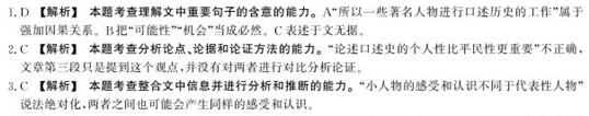 口述史料最广为人知的价值,就是可以作为文献史料的补充。文字史料,包括官方文献和民间文书,历来是史家研究历史的主要凭据,但毕竟很多非常重要的历史事件和历史人物,文献记载或语焉不详,甚至付诸阙如,也有些只是一面之词,无法反映历史真相。而且由于种种社会变迁和历史动乱,导致大量档案文献的散佚流失,更是常有的事。当事人的口述,恰恰能弥补这些不足,对历史上一些著名人物所做的口述在这方面的作用尤著。 口述历史的价值远远不止于此。它还具有不可替代的特殊价值,这是由口述史的性质决定的。首先是口述史“自下而上”的角度。口述史学提倡创立平民化的历史,让不掌握话语霸权的人们,包括社会底层的百姓、少数裔族群和妇女都有发出自己声音的可能性,使这些人的经历、行为和记忆有了进入历史记录的机会,并因此构成历史的一部分。近年来口述历史更进一步,不仅把占人口绝大多数的普通人的行为,而且还把他们的愿望、情感和心态等精神交往活动当作口述历史研究的主题。这不仅使史学研究的视角产生了根本变化,也使史学研究的广度和深度都大大拓展了。 其次是口述史特有的“个人性”。就口述作为史料的价值而言,这一点甚至比第一点更重要。口述史是最具“个人性”的一种呈现方式。口述史以记录由个人亲述的生活和经验为主,重视从个人的角度来体现对历史事件的记忆和认识,这里所说的“个人”,可以是大人物,是名人,同样也可以是处于边缘的小人物。对于同样的一段题材、一段历史,小人物也会有自己独特的个人感受,他们的人生受此事件的影响,未必就不如大人物、代表人物深刻。而且,那些不仅来自领袖人物、也来自平民百姓和少数族群口述的人生故事,使史学家得以从耳熟能详的历史事件中,发掘出许多以往被忽略的侧面,或者为传统官私方文献遗忘的段落。它使人们可以观察到冷冰冰的制度和结构以外的人性和他们的心态,这正是其他的史学研究方法难以企及而口述史特别擅长之处。 第三是独特性。“新史学”提出要对历史进行多层次、多方面的综合考察的主张,力图从整体上去把握它。但仅凭传统的文献和治史方法,很难做到这点,口述史却有其得天独厚的一面。通过口述,史学家往往能获得难以在官方文献中寻获的珍贵材料,例如某场战争、某个事件当中个人的际遇、家族的移民史、亲属与家族内部的关系等,这都可以对长于宏大叙事的史学研究,提供必不可少的史料补充。更重要的是,今天的口述史学通过几十年经验的积累,已经走得更远,从对往事的简单再现深入到大众历史意识的重建,把关注的焦点从“真实的过去”转移到“记忆的过去”的认识深度。口述史能够在揭示历史的深层结构方面作出自己独特的贡献,这点已为口述史学家所公认。 摘编自定宜庄《口述史料的独特价值与史料的整理鉴别》 1.下列关于原文内容的理解和分析,正确的一项是(3分) A.各种社会变迁和历史动乱导致大量档案文献散侠流失,所以一些著名人物进行口述历史的工作。 B.口述史学提倡创立平民化的历史,让边缘人都发出自己的声音,让其经历等进入历史的记录中。 C.官方文献侧重记载领袖人物的人生故事,口述史侧重记载平民百姓等群体的人生故事,两者定位不同。 D.重建大众历史意识,把关注的焦点转移到“记忆的过去”,这是口述史学在长期积累中得到的重大发展。 2.下列对原文论证的相关分析,不正确的一项是(3分) A.文章通过文字史料和口述史料的比较,论证口述史料可以作为文字史料的补充的观点。 B.文章重点从平民性、个人性、独特性三个方面阐述了口述史的独特价值,逻辑严密。 C.文章第三段从口述史作为史料价值的角度,论述口述史的个人性比平民性更重要。 D.文章第四段阐述了口述史对“新史学”的重要意义,为口述史的独特性价值提供论据。 3.根据原文内容,下列说法不正确的一项是(3分) A.很多非常重要的历史事件和历史人物,文字史料的记载存在不清晰或不全面的情况。 B.史学研究的视角发生重大改变,其广度和深度得以拓展,跟口述史的发展密切相关。 C.对于中国二十世纪三四十年代的抗日战争,小人物的感受和认识不同于代表性人物。 D.从口述史中获得官方文献史之外的材料,可以帮助新史学实现综合考察历史的主张。 参考答案 DCC