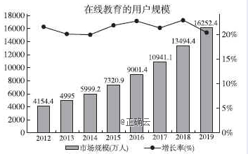 材料一: 教学资源的数字化、信息化、网络化,使得教育资源在大数据时代实现资源共享成为可能,包括网上教研系统、网络备课系统、教师学习中心系统、教师评价系统、资源管理与应用系统、视频点播系统、远程网络教学系统等,大数据教育资源可建立一站式教学信息平台。而学生在学习公共服务平台上,通过网络课堂、自主学习系统、互动交流系统等实现远程学习、移动学习。 目前互联网、云计算、物联网、移动互联网、智能技术等技术的快速发展,教育数据的形式和来源越来越趋于多元化、多样化,谁能快速发现和整合数据,并能解决如何利用数据挖掘其背后的价值这一问题,将会有效增加其在未来的竞争力。 (王海峰《大数据在教育领域中的发展现状》) 材料二: ![]() (摘编自《数据分析:如何发展教育大数据》,2017年9月20日) 材料三: 目前,“报送式收集”仍主导教育数据收集方式,“伴随式收集”没有真正实现。教育数据除了来源于教育系统内,还广泛来源于智能设备、社交媒体等诸多方面。随着“物联网”成为现实,采用传统方式进行收集数据量的比例会越来越小。科技研究公司高德纳( Gartner)估计,2016年每天有550万台互联设备上线,到2020年,互联设备的总数将超过目前水平三倍以上。IBM表示,目前每天产生的数据已达大约2.5艾字节,这意味着世界上90%的数据是在过去两年产生的。所以,“伴随式”的数据收集方式的实现,才意味教育大数据时代的到来。另外,“报送式收集”方式无法有效规避“数据利益”,“伴随式收集”具有动态性和即时性,虚假数据无所遁形,数据的真实性得到了有效保证。 (《光明日报》2017年12月5日) 材料四: 近年来,浙江省紧紧围绕教育现代化这条主线,着力以信息技术破解教育教学难点,在信息化发展理念、发展路径、发展机制等方面取得了突破性进展。目前,全省99%以上的中小学校实现千兆到校、百兆到班,49%的中小学校无线网络覆盖主要教学场所,班级多媒体普及率100%;38%的中小学校建有创新实验室或学科教室,移动学习终端逐步走向全面普及,智慧校园建设取得较好成效;之江智慧学习广场融通“国家—省—市—县”教育资源,汇聚了1384门普通高中选修课网络课程、30门义务教育拓展性课程精品网络课程、3.6万余个微课资源,为促进教育公平提供了新路径。根据教育部科技司发布的《中国教育信息化发展报告(2016)(基础教育)》,浙江省基础教育信息化综合指数居全国之首。 (光明网2017年12月25日) 7.下列对材料相关内容的理解,不正确的一项是(3分) A.材料一介绍了互联网、云计算、物联网等技术在教育领域的应用,教学资源呈现了数字化、信息化、网络化的特征,教育资源实现了共享。 B.从材料二可以看出,2012-2017年在线教育的市场规模逐年增加,并预计2018-2019年市场规模依旧保持增长,但增长率会降低。 C.教育数据来源于教育系统、智能设备、社交媒体等多方面,“报送式收集”依旧是主导教育数据收集的方式,但所占比例会越来越小。 D.浙江省在智慧校园建设方面成效显著,网络课程相当丰富,在信息化发展理念、发展路径、发展机制等方面取得的成绩值得其他省份学习。 8.下列对材料相关内容的概括和分析,正确的一项是(3分) A.在教育领域发展大数据,对教师而言,能共享更多教育资源,获取更多教学信息;对学生而言,能实现远程学习、移动学习,解决了教育不公平问题。 B.在教育数据的形式和来源多元化、多样化的背景下,只要快速发现和整合教育数据,挖掘教育数据背后的价值,就能在未来竞争中立于不败之地。 C.“伴随式收集”具有动态性和即时性,使虚假数据无所遁形,有效保证了数据的真实性,比“报送式收集”方式收集的教育数据更加真实有效。 D.浙江省基础教育信息化综合指数居全国之首,在网络普及、多媒体普及、移动学习端普及等教育现代化方面的成绩都远远超出了其他省市。 9.根据以上四则材料,概括大数据在教育领域中的发展趋势。(6分) 答 7.A【解析】“实现了共享”错,原文是“教学资源的数字化、信息化、网络化,使得教育资源在大数据时代实现资源共享成为可能”,混淆已然和未然。 8.C【解析】A项,“解决了教育不公平问题”错。原文材料四只是说“为促进教育公平提供了新路径”。B项,“只要快速发现和整合教育数据,挖掘教育数据背后的价值,就能在未来竞争中立于不败之地”错,过于绝对,原文中“教育数据的形式和来源越来越趋于多元化、多样化,谁能快速发现和整合数据,并能解决如何利用数据挖掘其背后的价值这一问题,将会有效增加其在未来的竞争力”,只是说“增强其在未来的竞争力”。D项,“都远远超出了其他省市”错,曲解文意,原文“浙江省基础教育信息化综合指数居全国之首”并不代表每个方面的成绩都超出其他省市。 9.①教育资源将实现共享,可以挖掘数据背后的价值。②在线教育的用户规模将越来越大。③数据的“伴随式收集”将得以实现,真实性将得到有效保障。④助力破解教育教学难点。(每点2分,答出三点即可。)