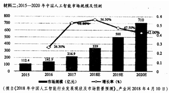 材料一: 人工智能(Artificial Intelligence),英文缩写为AI。它是研究、开发用于模拟、延伸和扩展人的智能的理论、方法、技术及应用系统的一门新的技术科学。人工智能从诞生以来,理论和技术日益成熟,应用领域也不断扩大,可以设想,未来人工智能带来的科技产品,将会是人类智慧的“容器”。人工智能可以对人的意识、思维的信息过程的模拟。人工智能不是人类智能,但能像人那样思考、更有可能超过人类智能。2017年7月8日,国务院发布了《新一代人工智能发展规划》,明确了我国新一代人工智发展的战略目标:到2020年达到世界先进水平,成为重要经济增长点和帮助改善民生;到2025年实现基础理论的重大突破,成为我国产业升级和经济转型的主要动力;到2030年,人工智能理论、技术与应用总体达到世界领先水平,成为世界主要人工智能创新中心。 《摘编自中国产业信息网》 ![]() 材料三: 我国人工智能产业重应用技术、轻基础理论,底层技术积累薄弱,存在“头重脚轻”的结构不均衡问题。基层技术积累薄弱使人工智能核心环节受制于人,阻碍人工智能领域重大科技创新,不利于国内企业参与国际竞争,并使国民经济和国家安全存在远期隐忧。 从技术角度而言,国内人工智能的计算机视觉、语音识别、自然语言处理等应用技术已接近甚至达到国际先进水平,但在基础元器件、底层算法和理论研究等方面与国际水平差距较大,缺乏重大原创科技成果。 从资本角度而言,截至2017年6月,国内人工智能领域投融资主要集中于应用技术领域,芯片领域的累计融资额仅占人工智能产业总融资额的2.1%。而美国人工智能产业的这一比例高达31.5%。 从企业分布角度而言,国内人工智能芯片企业多为规模较小的初创企业,难以满足芯片领域技术和资金门槛极高的要求,而美国芯片领域则不乏谷歌、英特尔、IBM、高通、英伟达等科技巨头。 (摘编自 安晖《我国人工智能加速与实体经济融合》,人民网2018年9月29日) 材料四: 人工智能军事应用是一把“双刃剑”。“它既可能成为人类迄今发生过的最好的事,也可能成为最糟糕的事。”霍金对人工智能的这一评价,启示我们面对“来势汹汹”的人工智能军事应用要保持足够的审慎。未来,随着大量智能化无人系统运用于战场,战争成本将大大降低,作战人员的“零伤亡”有望成为现实,这极易导致军事强国在武力使用上更加随意。而在复杂战场环境下,拥有高度智能的无人作战系统极有可能出现识别错误、通信降级甚至被敌电磁、网络攻击后“倒戈反击”等问题,而诸如滥杀无辜、系统失控等更会给智能武器的军事应用带来无穷隐忧。 由此可见,事关战争的重大问题决不能轻易交由机器做抉择,即便是人工智能军事应用日益完善成熟,也不能放任智能武器的“野蛮生长”,需要警惕人工智能可能带来的安全、法律、伦理等诸多问题。应加强社会安全监督管控,形成适应人工智能时代的社会治理模式;积极参与人工智能国际军备控制讨论与谈判,为应对人工智能带来的安全、法律与伦理问题贡献中国智慧和中国方案;牢固确立人类是人机关系主导者的思想,实现对人工智能的安全有效控制,让其为人类的和平发展服务,而不是让人工智能成为“恶魔的帮凶”。 (摘编自熊玉祥《AI军事应用是一把双刃剑》,《解放军报》2018年11月8日) 7、下列对材料相关内容的理解,不正确的一项是(3分) A、人工智能自诞生以来,发展日新月异。2017年7月8日,国务院发布《新一代人工智能发展规划》,明确提出了新一代人工智能发展的战略目标。 B、2015-2017年我国人工智能市场规模的增长率不断攀升,预估未来三年均会保持40%以上的增长率,因此,每年的市场规模总量将会不断壮大。 C、我国人工智能产业存在“头重脚轻”的结构不均衡问题,这就使我国人工智能领域在技术上与国际水平平均有较大差距,难以参与国际竞争。 D、我们要保持清醒的头脑,不能放任人工智能武器的“自由生长”,谨防人工智能可能带来的安全、法律、伦理等诸多问题。 8、下列对材料相关内容的概括和分析,不正确的一项是(3分) A、人工智能作为一门新的技术科学,可以模拟人的意识、思维,可以像人一样思考,随着人工智能的快速发展,它可能超过人的智能。 B、《新一代人工智能发展规划》,明确了我国新一代人工智能发展的三步走战略目标,最终使我国成为世界主要人工智能创新中心。 C、面对人工智能在军事上可能出现的问题,我们应积极贡献中国智慧和中国方案,有效管控好人工智能的安全,让其服务于人类的和平发展。 D、在复杂战场环境下,无人作战系统可能会被敌控制,带来无穷隐患,这就让人工智能的军事应用成为最糟糕的事。因此,要阻止人工智能有军事上的应用。 9、根据材料一、二、三,概括我国人工智能产业发展的特点以及遇到的主要问题,并提出相应的解决建议。(6分) 答 7.C(“我国人工智能领域在技术上均与国际水平有较大”以偏概全,材料中说的是“应用技术已接近甚至达到国际先进水平,但在基础元器件、底层算法和理论研究等方面与国际水平差距较大”,且“难以参与国际竞争”也不合文意,是底层技术薄弱不利于竞争。) 8.D(结论错误,“要阻止人工智能在军事上的应用”无中生有,材料中说的是“事关战争的重大问题决不能轻易交由机器做抉择”,材料强
