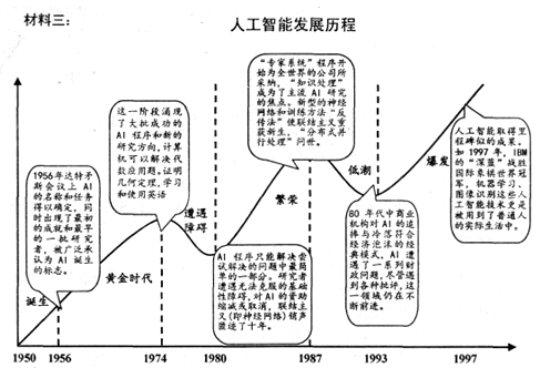 4.C(材料二,“新一代人工智能技术,……对传统产业的渗透广度、深度是前所未有的”,而非“开始”渗透。)