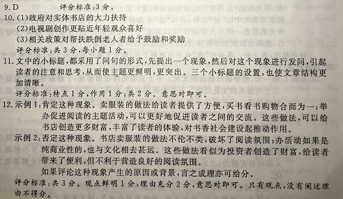 11.请简要分析本文小标题的特点及作用。(2分) 12.结合文本,简要评论实体书店“卖服装”“办活动”的现象。(3分) 参考答案