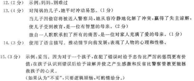【加拿大】莫·卡拉汉 下班时间就要到了, 杂货铺就要关门了,阿尔弗雷多·希金斯穿上外套正准备回家,刚出门就撞上了老板卡尔先生。卡尔先生上下打量了阿尔弗雷多几眼,用极低的声调说:“等等,阿尔弗雷多——” 他说得那么小声,反倒让阿尔弗雷多不知所措了。“怎么了,卡尔先生?”“我想你最好还是把兜里的东西留下再走。”卡尔先生说。阿尔弗雷多开始有一丝慌乱,但随即 很惊讶地说:“东西?!……什么东西?我不明白您说什么。”“一个粉盒,一支口红,还有至少两支牙膏,还要我说得更清楚些吗?”“我真不明白您是什么意思。”阿尔弗雷多的脸腾的一下子红了。 在卡尔先生冷峻的目光注视下,他根本不敢正视老板,又过了一会儿,他把手伸进口袋交出了东西。 “好吧,小伙子,现在告诉我,你干这种勾当有多久了?”卡尔先生说话了,“头一回,我发誓,以前真没从店里拿过任何东西……”卡尔先生没等他说完,就插话:“还想撒谎,嗯?难道我看上去就那么傻吗?难道我连自己店里的事都糊里糊涂吗?我知道你这样干已经很久了。”卡尔先生脸上的笑容古怪极了。“我不喜欢警察,但我要叫警察。”他说,“不过在此之前我想打电话给你的父亲,告诉他我要把他的宝贝儿子交给警察。”“我爸爸不在家。他是印刷工,晚上上班。”“那么谁在家?”卡尔先生问。“我妈妈在家。”卡尔先生向电话走去。 阿尔弗雷多越害怕,嗓门就越高,像是在显示着急无所畏惧似的,可尽管他在大声说话,但他的声音却完全憋在喉咙里:“请等一会儿,卡尔先生。这是跟别人没关系……”阿尔弗雷多声音小的可怜,卡尔先生已经在跟他母亲通话了。阿尔弗雷多想象待会儿的情景:妈妈迫不及待地闯进门来,怒气冲冲,眼里噙着泪花。他想上前解释,可她一把推开了他。噢,那太难堪了!尽管如此,阿尔弗雷多还是盼着妈妈快来,好在卡尔先生叫警察之前把他接回去。屋里两个人相互看着,一句话也不说。终于有人敲门了,卡尔先生开了门。“请进,您是希金斯太太吧?”他脸上毫无表情。“我是希金斯太太,阿尔弗雷多的母亲。”她大大方方地做着自我介绍,笑容可掬地和卡尔先生握手。卡尔先生怔住了,他没想到她会那样从容不迫,落落大方。“阿尔弗雷多遇到麻烦了,是吗?”“是的,太太。您儿子从我店里偷东西。不过,都是些牙膏、口红之类的小玩意儿。”“是这样吗,阿尔弗雷多?”她以略带伤感的口吻问儿子,并平静地看着他。“是的,妈妈……”“你干吗要干这种事?”“妈妈……”希金斯太太要说什么,却突然又停住了,把头转到了一边,“您打算怎么处理这件事呢,卡尔先生?”希金斯太太转过身来,笑容可掬地望着卡尔先生。“我?我本应该叫警察,那才是我该做的。”“叫警察?”她反问道。“是的,是应该这样的,希金斯太太。”“我本来无权过问您如何处理这件事,不过,我总觉得对于一个男孩来说,有时候给他点忠告比惩罚更有必要。他看上去个头倒不小,像他这么大的孩子有头脑的没几个。”在阿尔弗雷多眼里,今晚妈妈完全像个陌生人。瞧,她笑得那么自然,和蔼可亲。卡尔先生原以为阿尔弗雷多的母亲会被吓得六神无主,然而事实却完全相反。她的沉着反倒使他感到内疚,心里暗暗佩服起这个女人。“我不知道您是否介意让我把孩子带回去?”“当然可以,”他想了一会儿说:“我不想太不近情理。现在我告诉您我的决定:告诉您儿子别再上这儿来了,至于今晚的事嘛,就让它过去吧。”“那真是谢谢您了,我不会忘记您是个好人的……”离开时卡尔先生握着希金斯太太的手说:“认识您很高兴,非常遗憾我们只能以这种方式见面,请相信我这么做都是为了阿尔弗雷多好。”他们的手紧紧握在一起,就像交情深厚的老朋友一样。 阿尔弗雷多和母亲出了杂货铺,沿着大街走着,母亲迈着大步,两人谁也不开口说话。阿尔弗雷多终于忍不住了:“感谢上帝,结果是这样!”“求你安静一会儿,别说话。阿尔弗雷多。”到了家,。希金斯 太太脱了外套,看也不看儿子一眼,“阿尔弗雷多,还愣着干什么?睡去吧。你为什么总是没玩没了地闯祸呢?听着,今晚的事别告诉你爸爸。”说完她进了厨 房。 “妈妈太伟大了!”阿尔弗雷多躺在床上,自言自语道。他觉得应该立即去对她说她有多么了不起。 他起身走向厨房,妈妈正喝茶。那情景让他大吃一惊。妈妈失魂落魄地坐在那儿,神态糟糕透了,根本不是杂货铺里那个沉着冷静的妈妈。她颤抖地端起茶杯,茶溅到了桌上,嘴唇紧张地抿着,似乎一下子老了许多。 阿尔弗雷多站在那里默默地看着,他突然想哭……从那双颤巍巍的手上,那一条条刻在她脸上的皱纹里,他仿佛看到了妈妈内心所有的痛苦。他忽然意识到自己长大了。 今晚,阿尔弗雷多第一次认识了妈妈。 (有删改) 12.请为本文拟一个标题。 13.联系文中相关内容分析希金斯太太是怎样的一位母亲。 14.本文主要使用了哪种描写方法,有何作用? 15.你认为文中对阿尔弗雷多偷窃行为的处理方式是否妥当,为什么? 参考答案 12.示例,妈妈,别难过 ![]() |