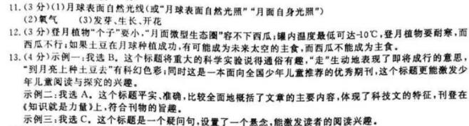 传说,月亮上最有名的动植物是玉兔和桂树,有诗歌这样形容:“仙人垂两足,桂树何团团。白兔捣药成,问言与谁餐。”今天,嫦娥四号落月探测器已跃跃欲试,这次的目标是月亮那不为人知的背面,而此次,我们带上月亮的将是一份大礼——土豆。由教育部深空探测联合研究中心组织,重庆大学牵头的科普载荷“月面微型生态圈”,将作为嫦娥四号的“乘客”之一,于2018年底登陆月球背面,进行人类首次月面生物实验。 “奶粉罐”里乾坤大 “月面微型生态圈”高18厘米,直径16厘米,净容积约0.8升,总重量3千克,从表面看就是一个圆柱形的金属罐子,有点类似于我们家里的奶粉罐。在罐子里,土豆和拟南芥这两种植物会进行光合作用,释放氧气,而动物虫卵吸入氧气,派出二氧化碳和生活垃圾提供给土豆和拟南芥的种子,循环往复,小生态圈就初现形态了。 这时候可能有人会问,地球上的光合作用直接利用太阳光,那么月球表面自然光线是如何引入“生态圈”的呢?原来,它是通过光导管引入的。这就实现了月面原位资源利用,让动植物完全接受月球的光照环境。深空探测联合研究中心的老师们之前也考虑过用人工光线模拟地球上的光照环境,但利用月面自身光照对实验的意义更大。如果动植物能够适应月球光照生长,那么以后人类就可以在月球建设基地,开展长时间的科研工作,这对人类未来在外星球生存非常重要。 “月面微型生态圈”是一个真实的生态圈,假设这个生态圈运转正常,罐子里的动植物将经历一个完整的生命周期。动物虫卵从虫卵孵化到幼虫生长发育,土豆和拟南芥的种子从发芽、幼苗生长到开花,一个完整的生命周期就诞生了。 登月生物有讲究 由于“罐子”容积有限,就要求里面的动植物不能占用过多空间。那些能登上月球的动植物就需要满足特定的条件。首要条件就是“个子小”。其次,由于月球上没有大气传递热量,昼夜温差大,在太空舱内温度控制在30-60℃,“罐子”内温度控制为最低-10℃,因此要求动植物能够耐高温、耐冻,而且能抗辐射、抗干扰。 土豆是大家熟悉的食物,很有可能是以后太空的主食。这次选择的土豆是特别培育的“小个子”品种。拟南芥开花周期短,从发芽到开花只需1个月,是很好的实验用模式植物,因此把在月球开出第一朵花的任务交给了它。 美国电影《火星救援》中,宇航员马克独自在火星将居住舱变成火星土豆农场,靠种土豆、吃土豆生存了500天。美国大片里出现的场景,中国科学家正将它一步步变为现实。如果嫦娥四号科普载荷成功,将意味着“月面微型生态圈”适合于所有地外星球并成为人类生存的基础。 (选自《知识就是力量》2018年第4期,雍黎撰文,略有删改) 11.根据文本对“月面微型生态圈”的介绍,在下图空缺处填写相应的内容。(3分) ![]() 月面微型生态圈示意图 12.小敏一听将在月亮上种土豆,马上就说:“夏天到了,我最喜欢吃西瓜,到月亮上种西瓜多好!”请你根据文本内容,向小敏解释本次月面生物实验不种西瓜的原因。(3分) 13.这篇文章刊登在《知识就是力量》杂志上,你认为下列哪一个选项最适合做这篇文章的标题?请说明理由。(4分) A.人造“月面微型生态圈”将首次登月 B.走,到月亮上种土豆去 C.月亮上能种土豆吗? 答